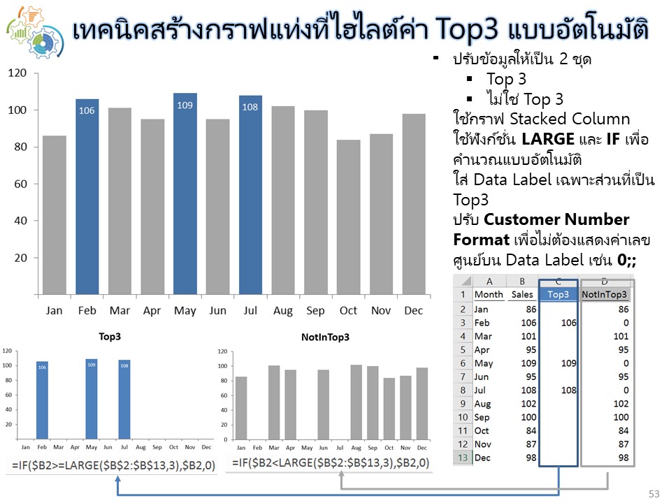“อยากสร้างกราฟแท่งที่ไฮไลต์ค่า Top 3 แบบอัตโนมัติต้องทำยังไงครับ”