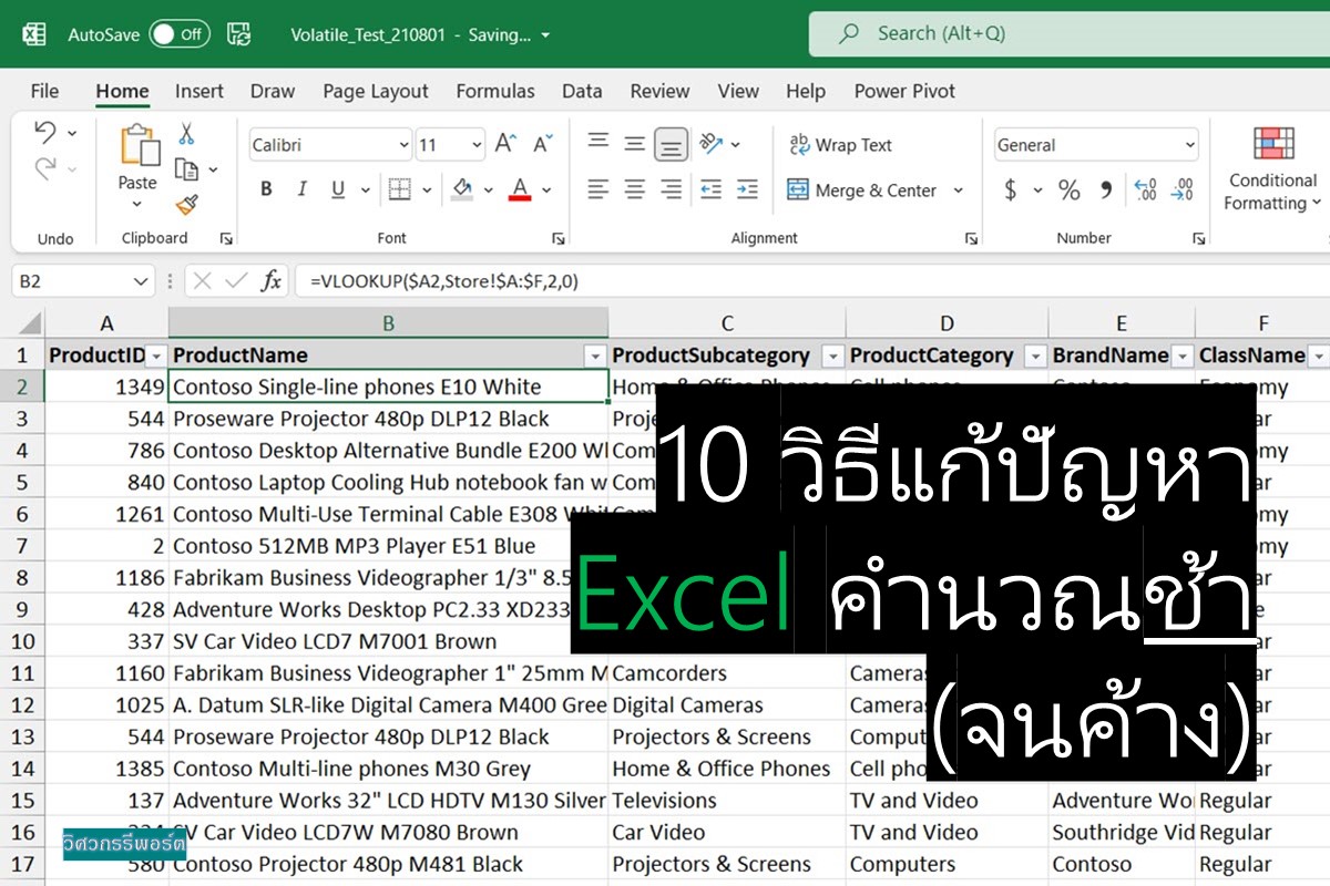 ดังนั้น ถ้าก๊อปปี้สูตรลงมา 500,000 บรรทัด Excel ก็จะคำนวณ 500,000 บรรทัดทันที แน่นอนว่าทำให้ประมวลผลช้า