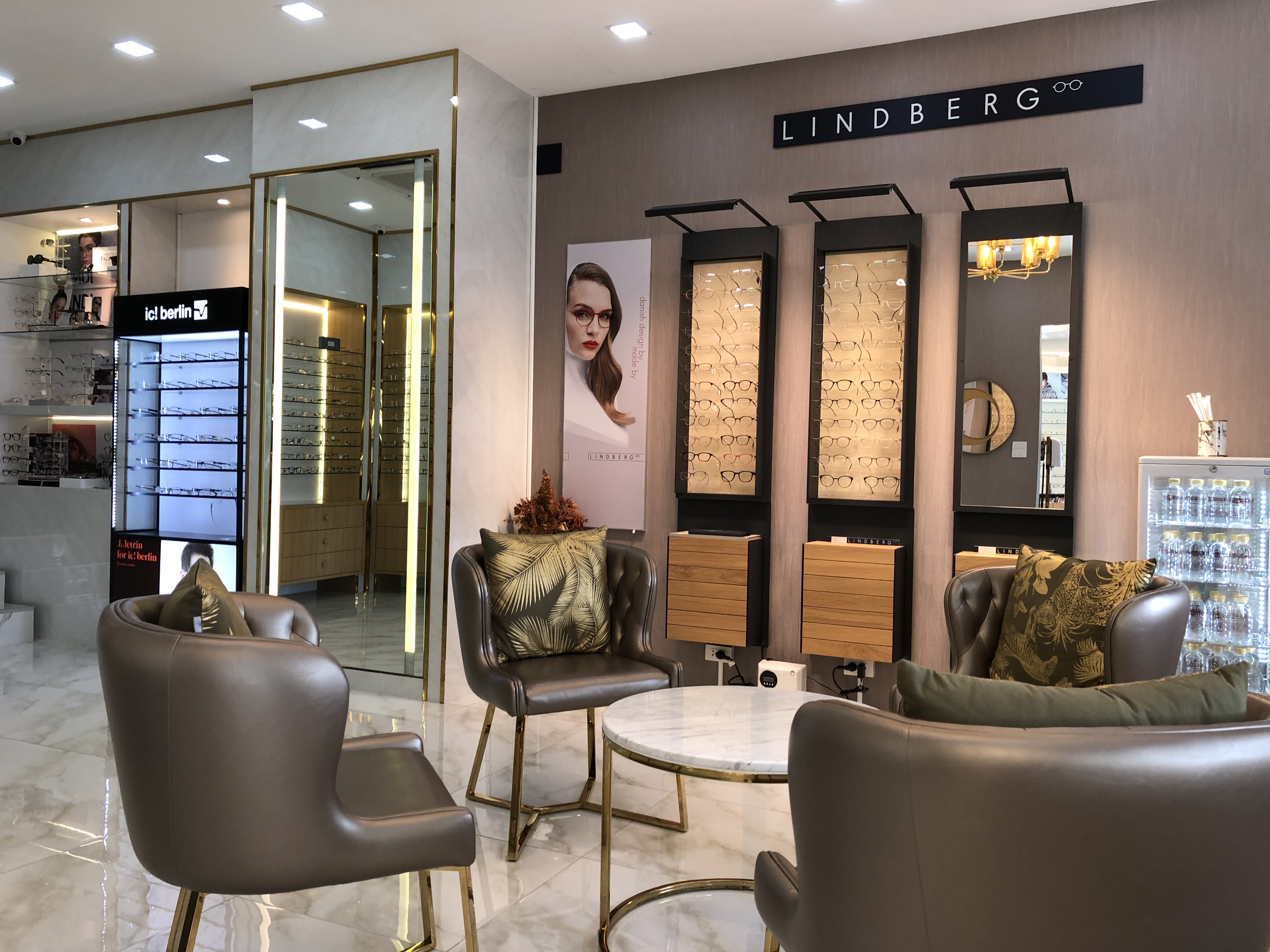 ลองมองรอบ ๆ พบว่าร้านไฮโซมาก ขายแต่แว่นแบรนด์ดัง ๆ Dior, Gucci, Oakley, ic berlin